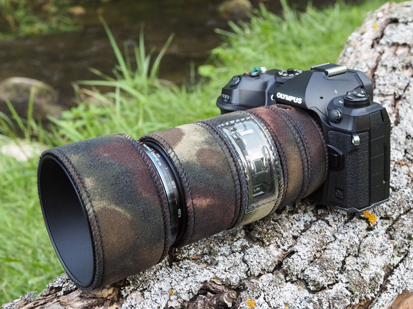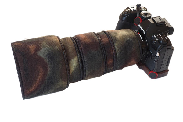 OM Zuiko 50 200 f2.8 IS pro Neoprene protective lens cover.