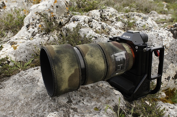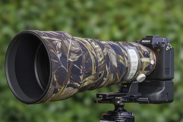 Sony 70 200 f4 OSS II neoprene protective Camo lens cover.